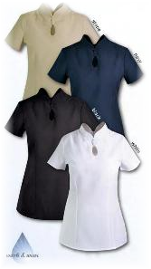 100% Polyester Chelsea top with a tear drop neckline and a feminine fit. It has slimming tapered panels and a back zip
